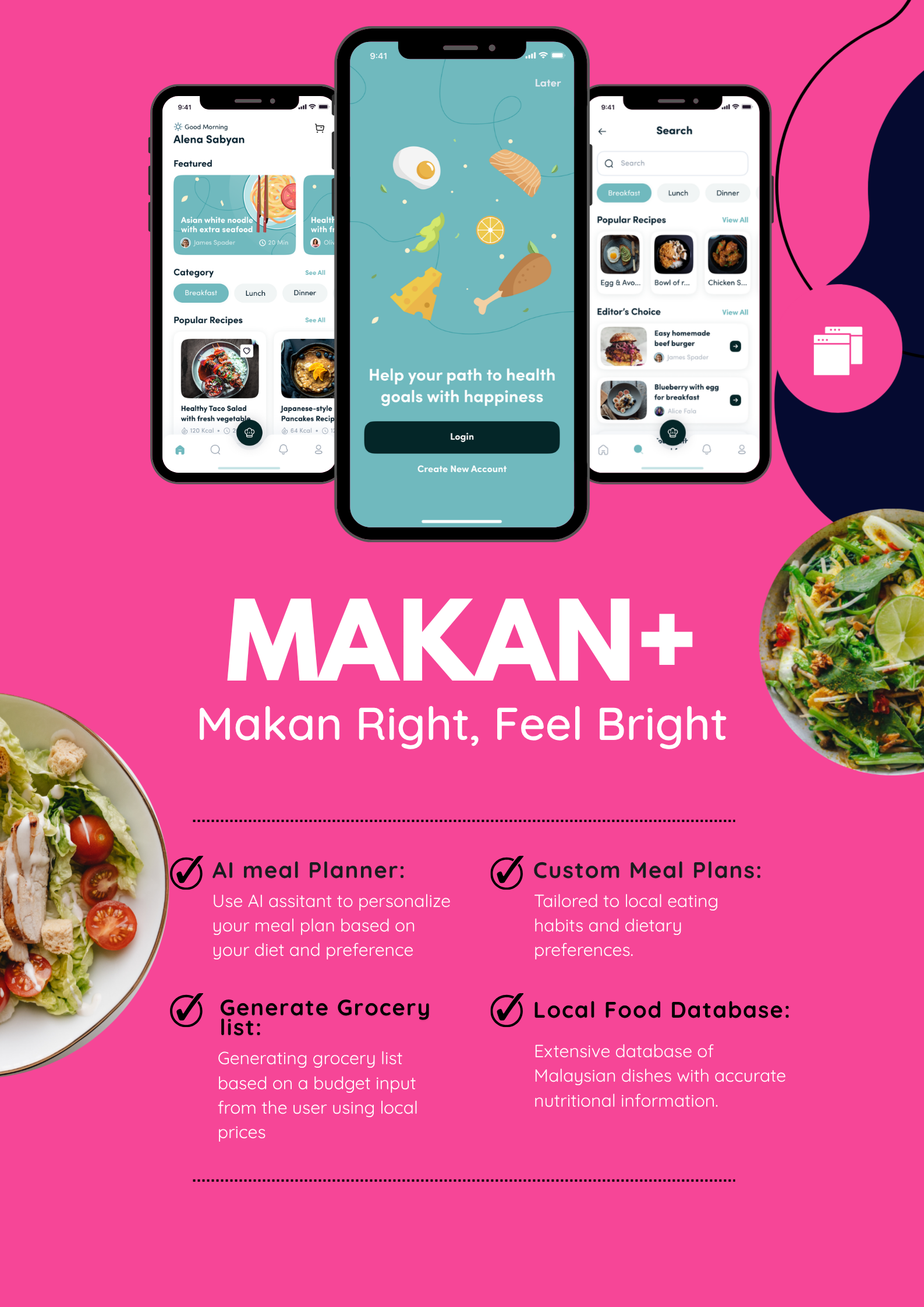 Makanplus is a mobile application built with Flutter and Firebase designed for tracking personal metrics and managing personalized meal plans. The app features secure user authentication, profile customization with image uploads, dynamic meal plan tracking, and device integrations like mapping and content sharing.